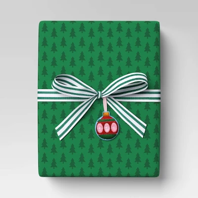 18′ Christmas Fabric Ribbon Grosgrain White/Green Stripes – Wondershop™