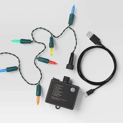 Add instant warmth and sparkle to your seasonal setup with these LED Battery-Operated Hybrid Christmas Miniature String Lights from Wondershop™. Featuring a dark green plastic wire strung with 50 miniature LED bulbs, these multicolor string lights add a magical touch to indoor and outdoor spaces. These hybrid lights can be operated both by an outlet or batteries for versatile and convenient use. Spiral them around your holiday tree, weave them through a banister, or string them along your patio, deck, or garden.